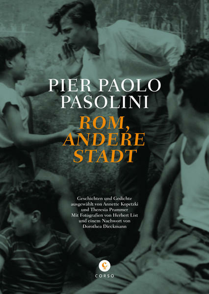 Diese Texte über Rom aus den 50er und 60er Jahren – die hier zum ersten Mal ins Deutsche übersetzt erscheinen – sind Pasolinis 8 berührende Liebeserklärungen an die »grande metropoli popolare« und ihr poetischer Abgesang. Pasolini erzählt von seiner Liebe zu dieser Stadt, die sich aber durch den aufziehenden »Zentralismus des Konsumismus« schon zu seinen Lebzeiten veränderte: eine Liebe mit unglücklichem Ausgang. Ein“Muss“ für alle Pasolini-Leser, das „Soll“ für all jene, die hinter Roms Gegenwartskulisse schauen wollen. Die Fotografien von Herbert List aus der Entstehungszeit der Texte geben dem Buch seine besondere Atmosphäre. Dorothea Diekmanns Nachwort berichtet von der unerfüllten Liebe Pasolinis zur Ewigen Stadt.