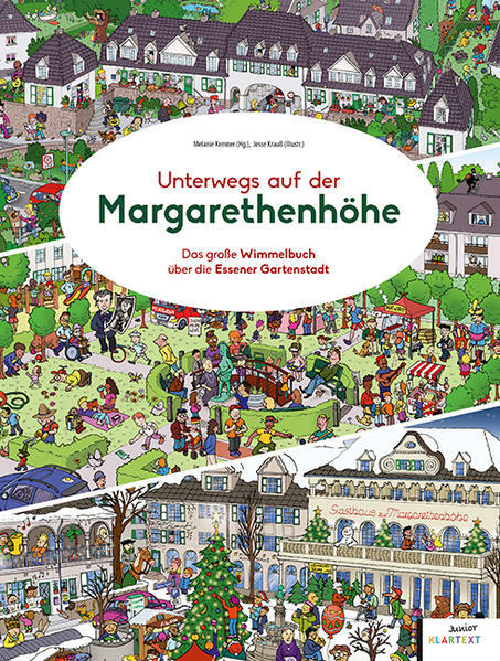 Das ist ja die Höhe! Genau. Das ist sie – die Margarethenhöhe in Essen. Auch bekannt als „das schönste Dorf der Stadt“. Melanie Kemner und Jesse Krauß erzählen auf den bunten Doppelseiten die Gegenwart und Geschichte dieser einzigartigen Gartenstadt aus den Anfängen des 20. Jahrhunderts in dichtbebilderten Alltagssituationen. Auf den Wimmelbildern von Originalschauplätzen des Stadtteils gibt es für junge und erwachsene Leser*innen viel zu entdecken. Die Zeichnungen zeigen mit sprühender Fantasie und amüsanten Details das bunte Treiben in dieser lebenswerten und grünen Siedlung. Viele Facetten des Lebens in der Gartenstadt, die von ihrer Gründerin Margarethe Krupp mit so viel Weitsicht und moderner Herangehensweise konzipiert wurde, werden in liebevoll inszenierten Bildern gezeigt. Das ganz besondere Lebensgefühl einer dörflichen Siedlung mitten in der Stadt wird durch die Zeichnungen lebendig und bietet neben vielen Erzählanlässen interessante Begegnungen mit historischen und gegenwärtigen Persönlichkeiten. Auf jedem Wimmelbild ist ein spielender Bär versteckt – nach einer der Skulpturen auf der Margarethenhöhe – und lädt besonders Kinder ein, ihn zu entdecken