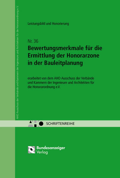 AHO 36: Die Neuauflage "Bewertungsmerkmale Bauleitplanung" ist in erster Linie eine Arbeitshilfe. Sie schafft Klarheit in den Begrifflichkeiten und stellt den Bewertungskatalog mit den verschiedenen Kriterien umfassend dar. Diese Kriterien bilden die Voraussetzungen dafür, dass Auftraggeber und Auftragnehmer „eine Sprache sprechen“ und dass alle Bewertungsmerkmale umfassend und ausgewogen bei der Ermittlung der Honorarzone berücksichtigt werden.