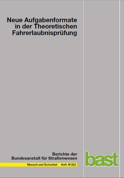 Um das unverhältnismäßig hohe Unfallrisiko junger Fahranfänger zu senken, werden derzeit unterschiedliche Maßnahmen verfolgt. Zu diesen Maßnahmen gehören unter anderem die Optimierung der Fahrausbildung sowie der theoretischen und praktischen Fahrerlaubnisprüfung. Das Ziel des von der BASt in Auftrag gegebenen Projektes „Neue Aufgabenformate in der Fahrerlaubnisprüfung“ bestand in der wissenschaftlichen Fundierung möglicher Maßnahmen zur Verbesserung der theoretischen Fahrerlaubnisprüfung. Im vorliegenden Projekt wurden neue Aufgabenformate entwickelt, um sie auf ihre testpsychologische und lehrlerntheoretische Eignung zu überprüfen. Insbesondere wurde dabei der Einsatz dynamischer Darstellungsformate berücksichtigt, der aufgrund der Nähe zur natürlichen Wahrnehmung im Fahrkontext als besonders vielversprechend betrachtet wird.