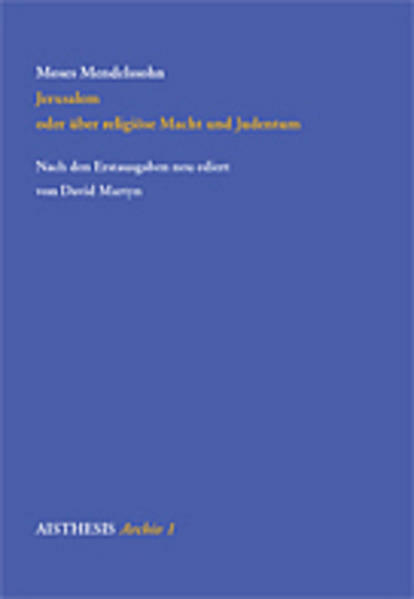 Moses Mendelssohn wurde 1729 als Sohn eines Synagogenschreibers in Dessau geboren und kam 1743 nach Berlin. Seine Schriften zur Ästhetik, Erkenntnistheorie und Metaphysik machten ihn in wenigen Jahren zu einer europäischen Berühmtheit und zum ersten deutschsprachigen Juden von literarischem Weltrang. Jerusalem oder über religiöse Macht und Judentum ist seine confessio judaica und zugleich eine theoretisch fundierte Abhandlung über das richtige Verhältnis von Staat und Religion. Von Kant, Garve und Herder bewundert, wurde sie in kürzester Zeit neben Lessings Nathan dem Weisen zur meistdiskutierten Toleranzschrift der als 'Zeitalter der Toleranz' bekannten Epoche.