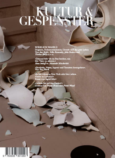 Beiträge u.a. Julia Benkert, Thomas Palzer, Volko Kamensky, Fred Truniger, Romeo Grünfelder und Werner Ruzicka. Einem investigativen Beitrag von Berthold Hering über die Grünverschiebung von Gelb zu Blau. Außerhalb des Dossiers wie immer wilder Galopp: Essays zu Termiten und anderen staatenbildenden Lebewesen und zu 'Wahn und Mittelmaß' bei Johann Heinrich Voß. Außerdem setzen wir die Folge der Wiederveröffentlichungen fort und freuen uns, die 'Mitscherlich-Aktion', einen umfangreichen Text von Hans Imhoff, präsentieren zu können. Es gibt Performanceanleitungen von Ingrid Scherr und den Geschäftsbericht des Zentrums für verkrampfte Kunst, Bildstrecken von Verena Braun, Frank Witzel, André Behn und Thomas Demand, dessen Dokumentation eines Unfalls auf einen Vasenbruch in Cambridge zurückgeht, wo ein Besucher vor einem Jahr wirklich über seine Schuhbänder stolperte und in drei Ming-Vasen hineinfiel. Ein sehr schönes Menetekel, für unser einjähriges Bestehen, wie wir finden.