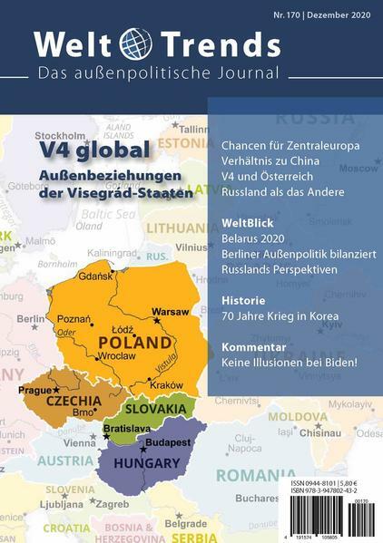 Vor 30 Jahren formierte sich die Visegrád-Gruppe. Heute gibt es zwischen Polen, Ungarn, Tschechien und der Slowakei ein dichtes Netz an Beziehungen. Die Gruppe mischt zugleich in der EU kräftig mit, wenn es um Haushalt oder Flüchtlinge geht. Junge Autorinnen und Autoren aus diesem Raum diskutieren im Heft über diese Gruppe. Im WeltBlick geht es zwei Mal um Belarus. In der Analyse wird die machtpolitische Perspektiven Russlands diskutiert. Im Kommentar warnt Erhard Crome vor voreiligen Hoffnungen im Hinblick auf einen Präsidenten Joe Biden.