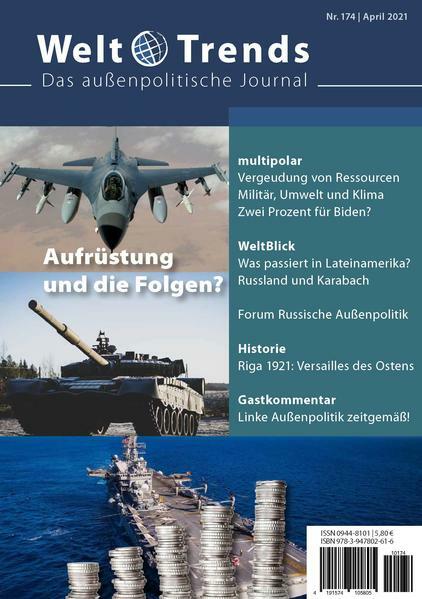2019 wurden weltweit 1.917 Milliarden US-Dollar für militärische Zwecke ausgegeben. Das Thema beschäftigt sich mit diesem Rüstungswahnsinn und seinen Auswirkungen auf Wirtschaft, Umwelt und Klima. Im Forum wird die Debatte zu „Russland in der Weltpolitik“ mit Beiträgen von Alexander Rahr und Hans-Heinrich Nolte geführt. Im Weltblick geht es um die Entwicklungen in Südamerika und den Zweiten Karabachkrieg. Im Gastkommentar stellt MdB Matthias Höhn, sicherheitspolitischer Sprecher der Linksfraktion, die Frage nach einer Außenpolitik „auf der Höhe der Zeit“.
