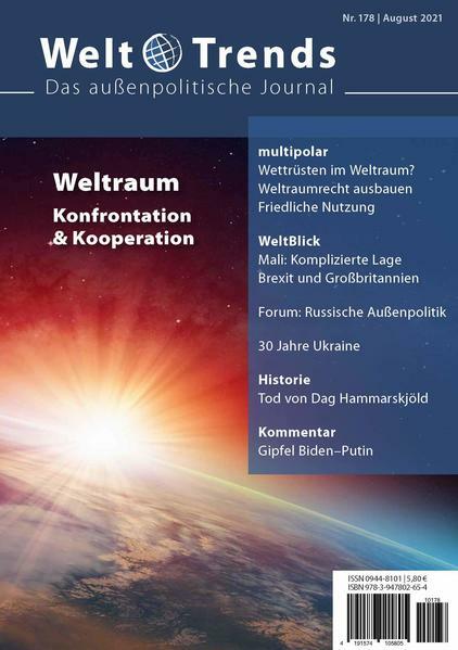 Der Weltraum ist en vogue. Mehr Akteure, mehr Satelliten (und mehr Schrott) im All. Es geht um Interessen und die führen zu Konflikten. Im Thema geht es um die Militarisierung (Götz Neuneck), um den Erhalt der friedlichen Kooperation (Dieter B. Herrmann), um die Verrechtlichung der Problemlagen (Gunter Görner) und um den politischen Willen zur Zusammenarbeit im All (Lutz Kleinwächter). Im Forum setzen wir die Debatte zu Russlands Außenpolitik fort. Weitere Beiträge sind zu Mali, Großbritannien und zur Ukraine.