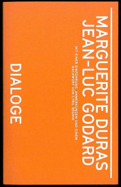 Die drei Dialoge zwischen Marguerite Duras und Jean-Luc Godard schlagen einen Bogen, der im Oktober 1979 beginnt, im September oder Oktober 1980 fortgesetzt und im Dezember 1987 beendet wird. Sie sind Zeugnis einer engen Beziehung zwischen der Schriftstellerin und dem Regisseur, zugleich aber eine in sich geschlossene Erzählung. Die zweite Begegnung fand statt, nachdem sie ihre je eigenen Überlegungen zum Kino veröffentlich hatten – Duras in dem Band Die grünen Augen. Texte zum Kino, Godard in seiner Einführung in eine wahre Geschichte des Kinos. Ihre Dialoge berühren beinahe sämtliche Themen, die sich auch durch diese Bücher ziehen: die Frage nach dem Verhältnis zwischen Schrift und Bild, die Repräsentation dessen, das der Repräsentation entzogen scheint (Konzentrationslager und Inzest – aus ganz unterschiedlichen Gründen), Überlegungen zur Kindheit und zum Fernsehen. Dialoge wird mit einer Einführung, Kommentaren und einem Nachwort von Cyril Béghin begleitet.